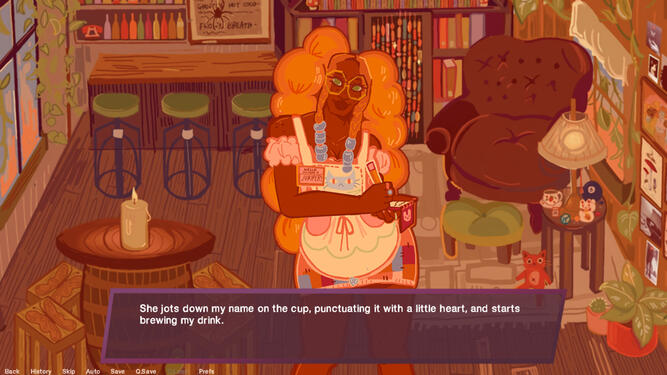 The game is coded in Ren'py, a free visual novel engine using Python. The demo will be released for free on itch.io in 2023. We currently expect it to be around 10k words/20 minutes long, featuring a short introduction to the protagonist, setting, and romanceable characters.